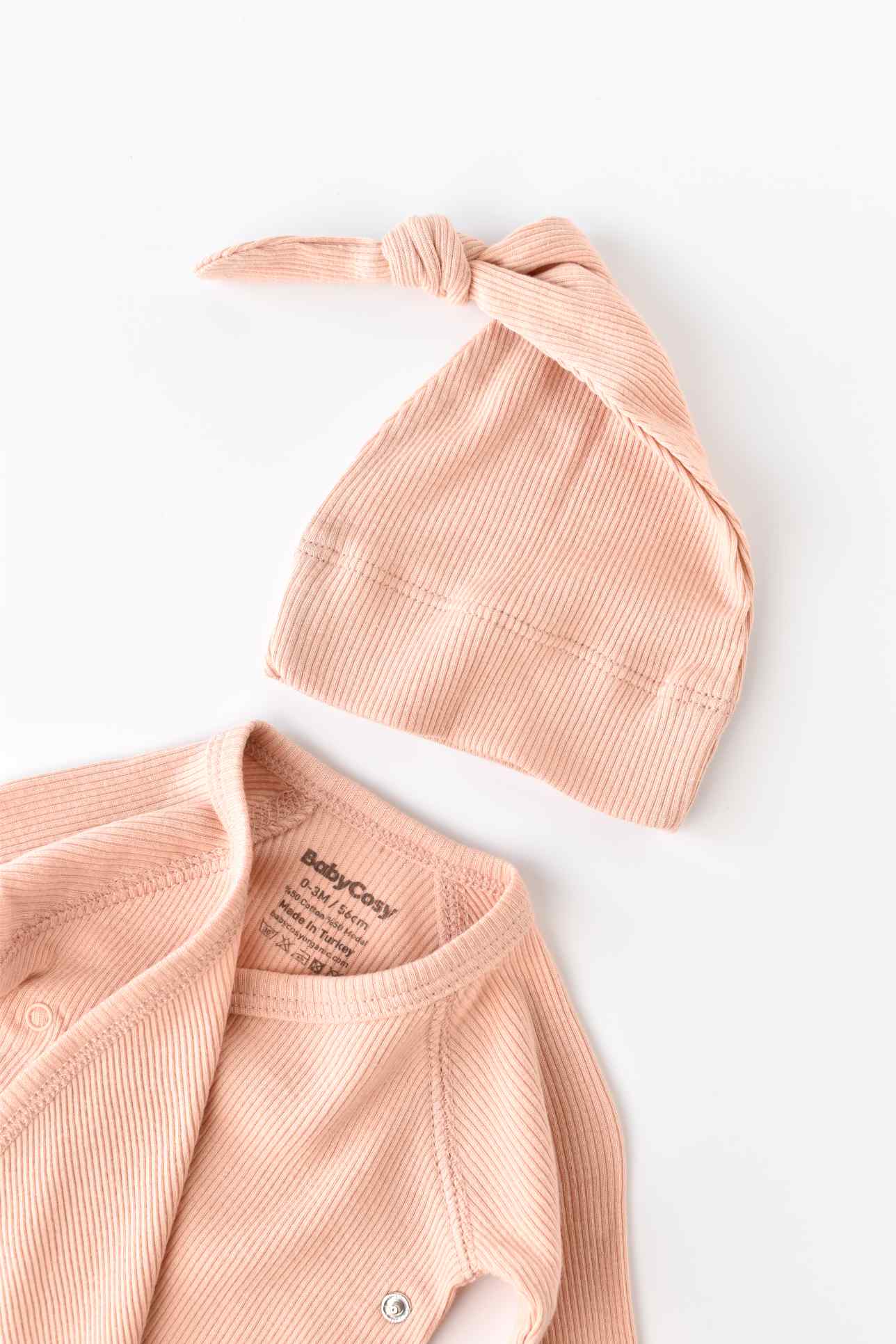 Deze comfortabele 4-delige newborn set is de complete start voor elke baby. Gemaakt van 100% zachte natuurlijke stoffen bestaande uit biologisch katoen gemixt met modal. De stof heeft een fijne ribstructuur wat perfect is voor de gevoelige babyhuid.
