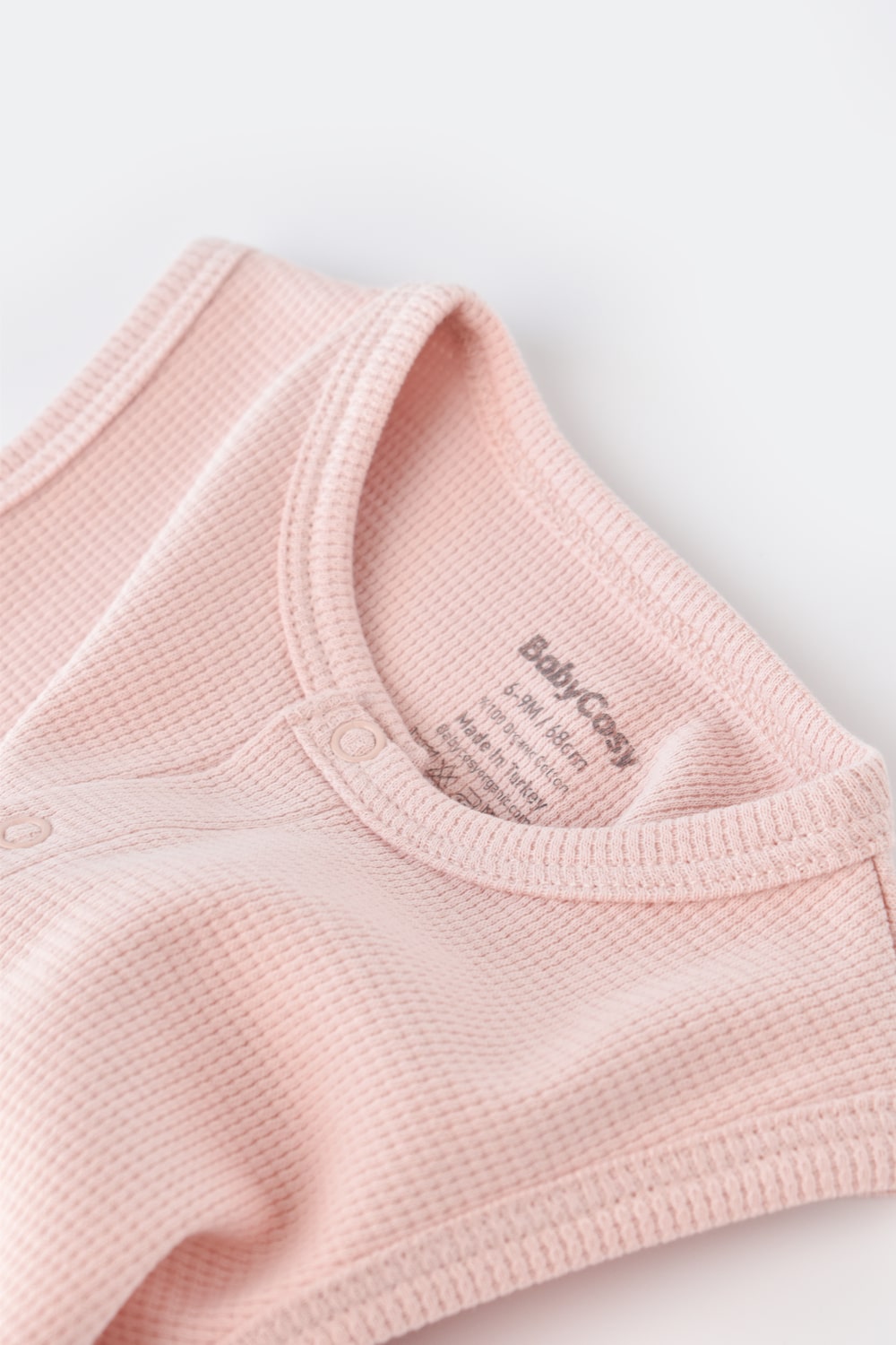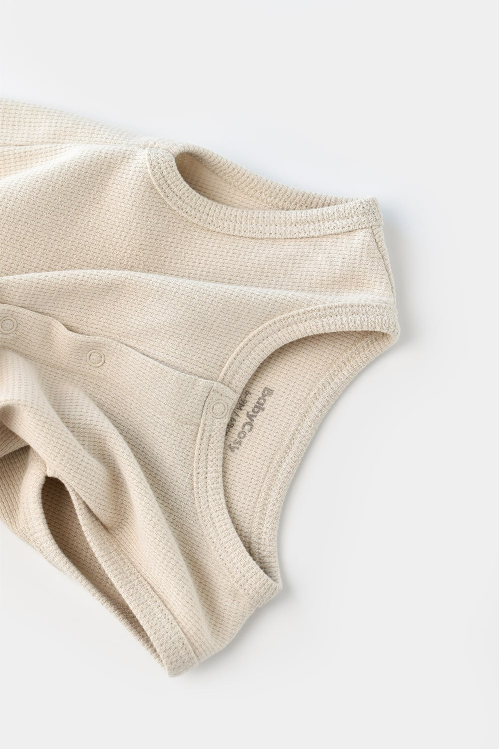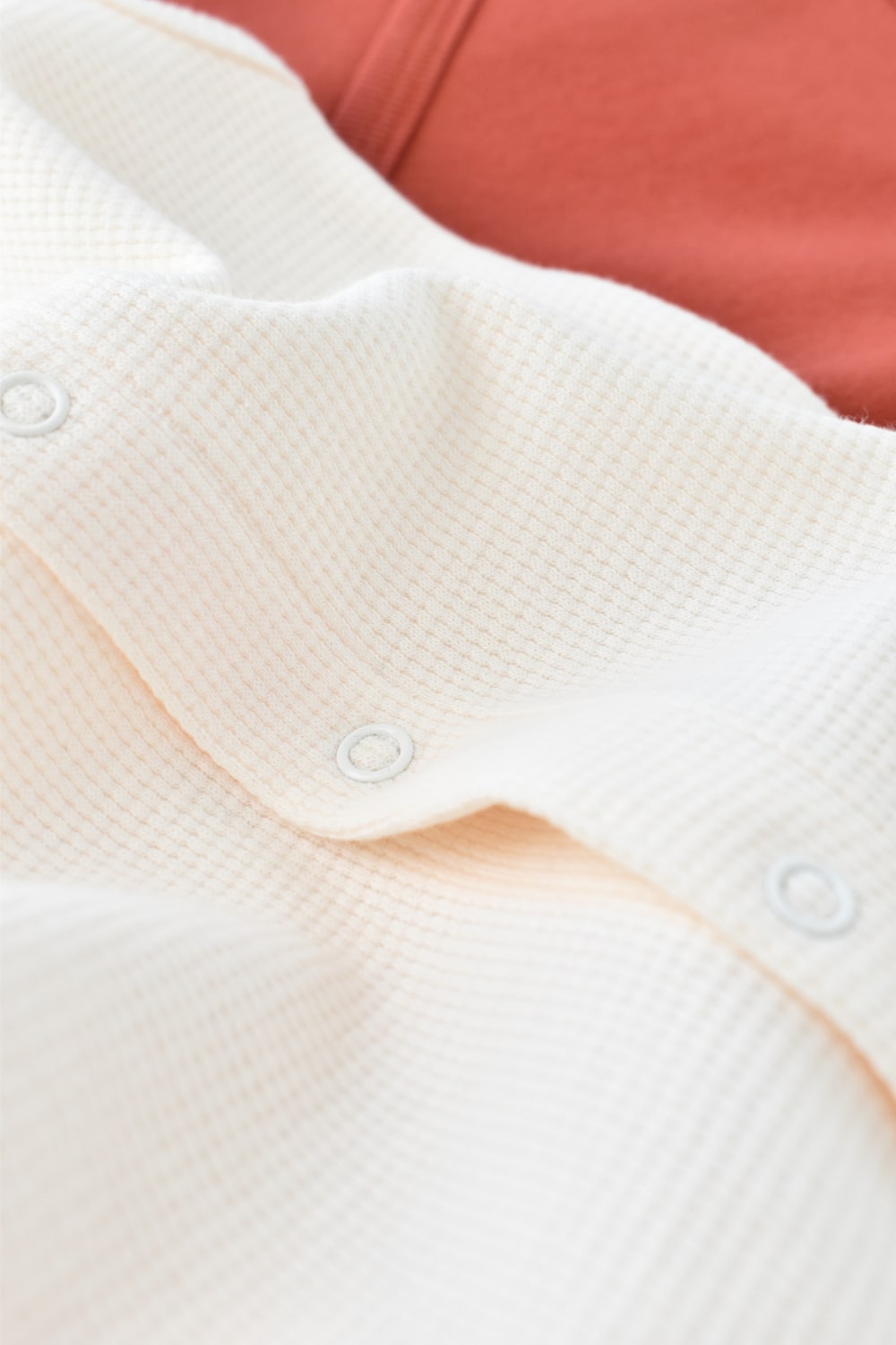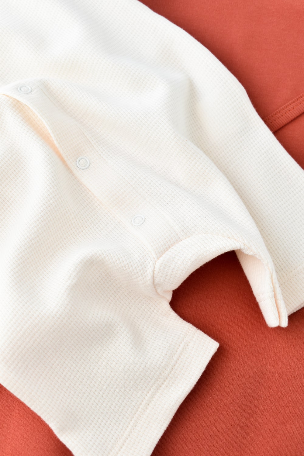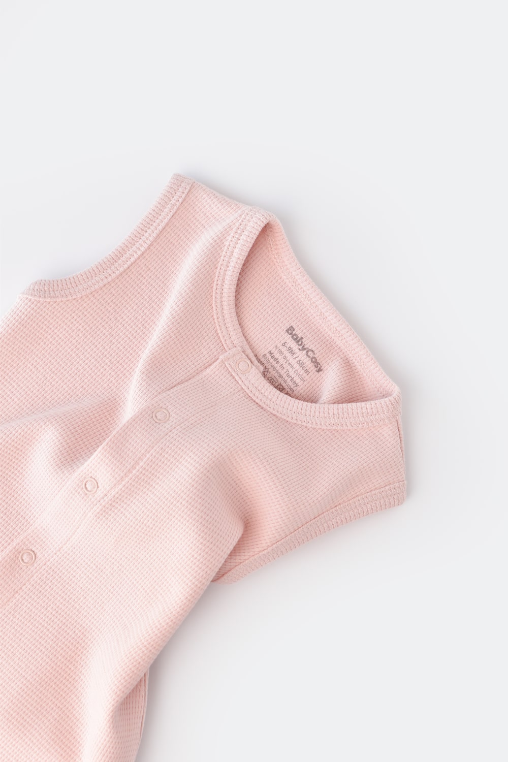 Deze romper is gemaakt van 100% biologisch katoen en biedt ultiem comfort dankzij de luchtige honingraatstructuur. De honinggraadstructuur van de stof zorgt voor een natuurlijke luchtcirculatie, waardoor je baby altijd fris en comfortabel blijft.