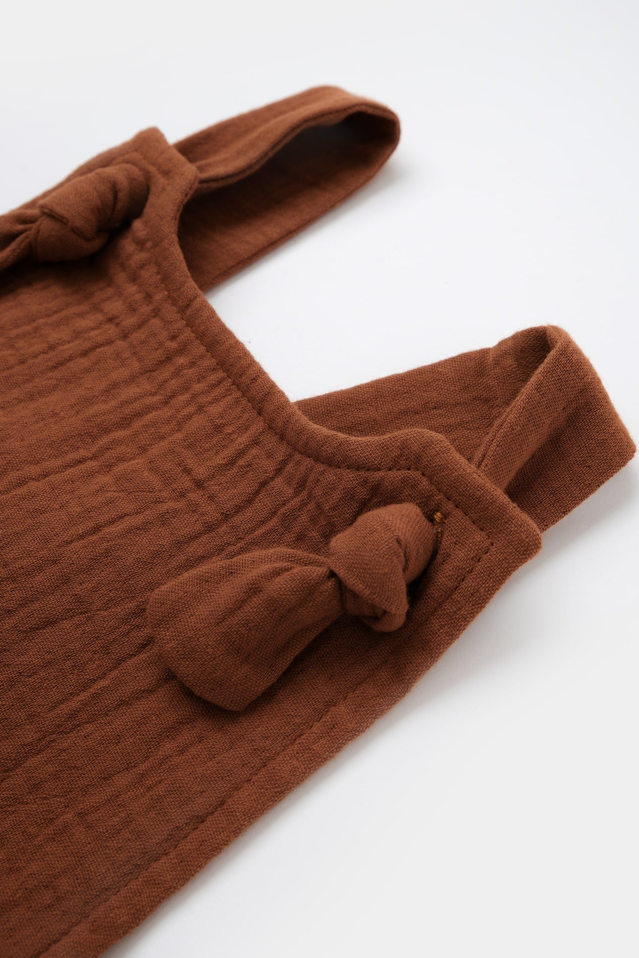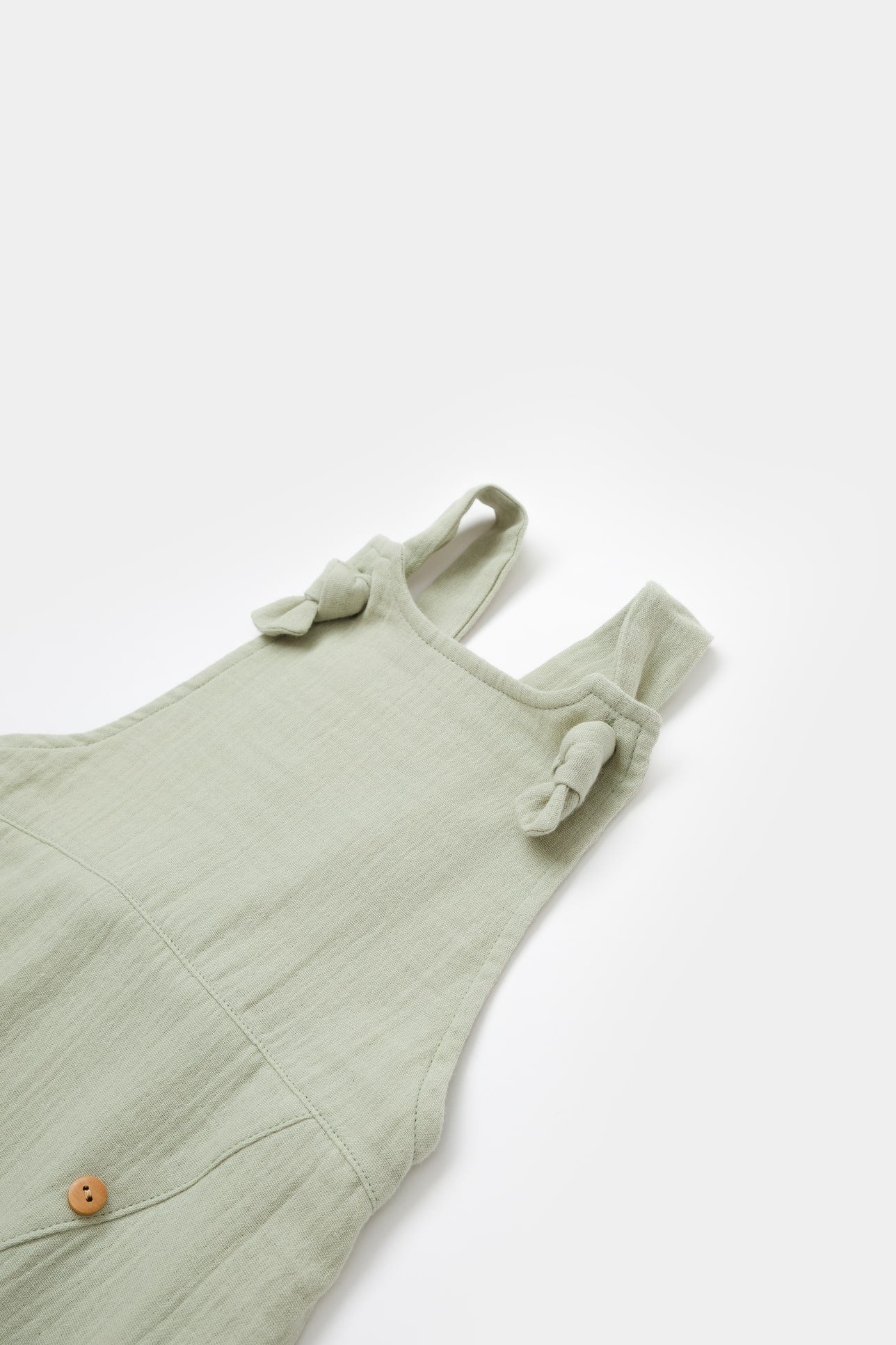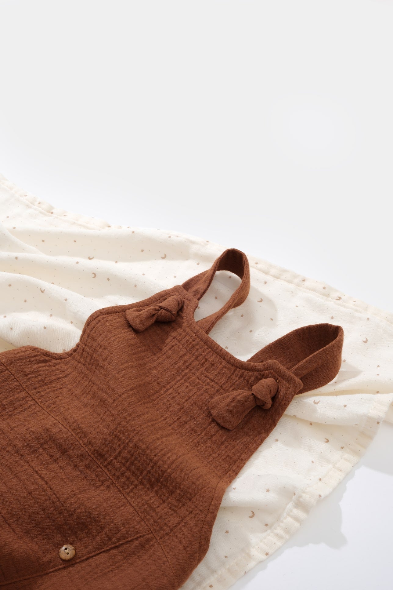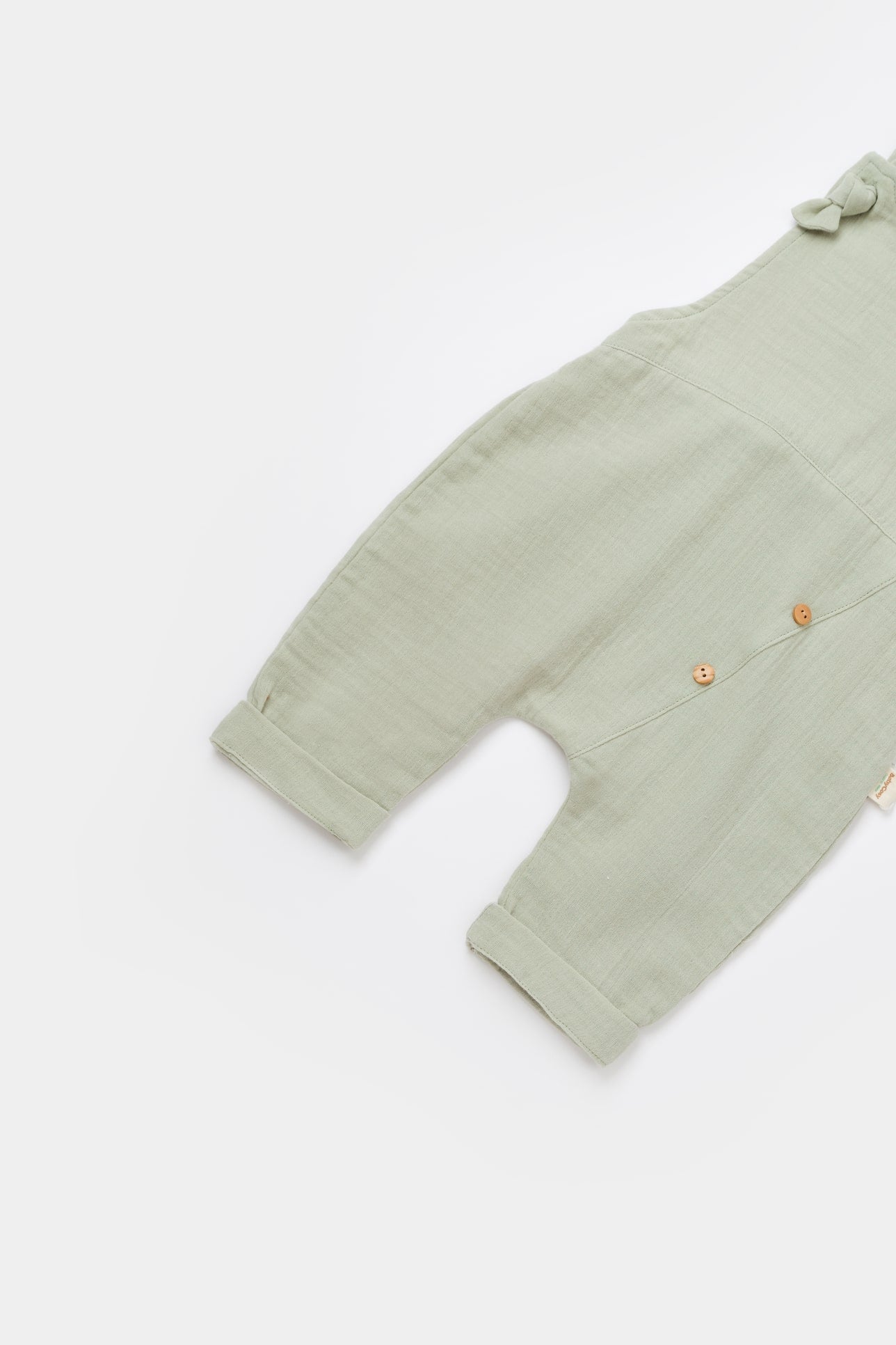 Dit luchtige en comfortabele boxpakje is gemaakt van 100% katoenen mousseline. De stof staat bekend om zijn lichtgewicht en ademende kwaliteit. De bandjes afgewerkt met een knoop detail en maken het makkelijk om de romper in lengte te verstellen zonder af te doen aan het ontwerp.