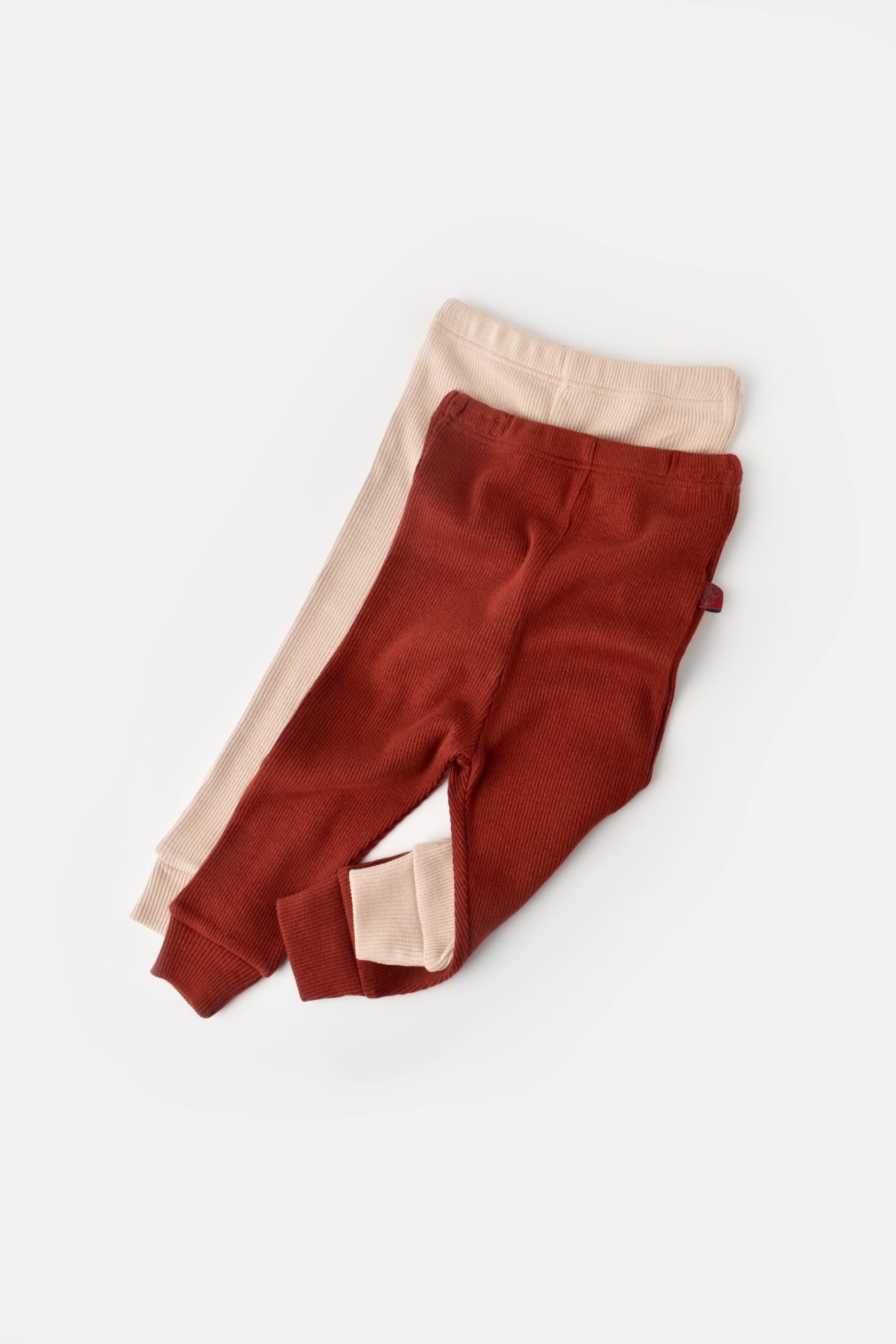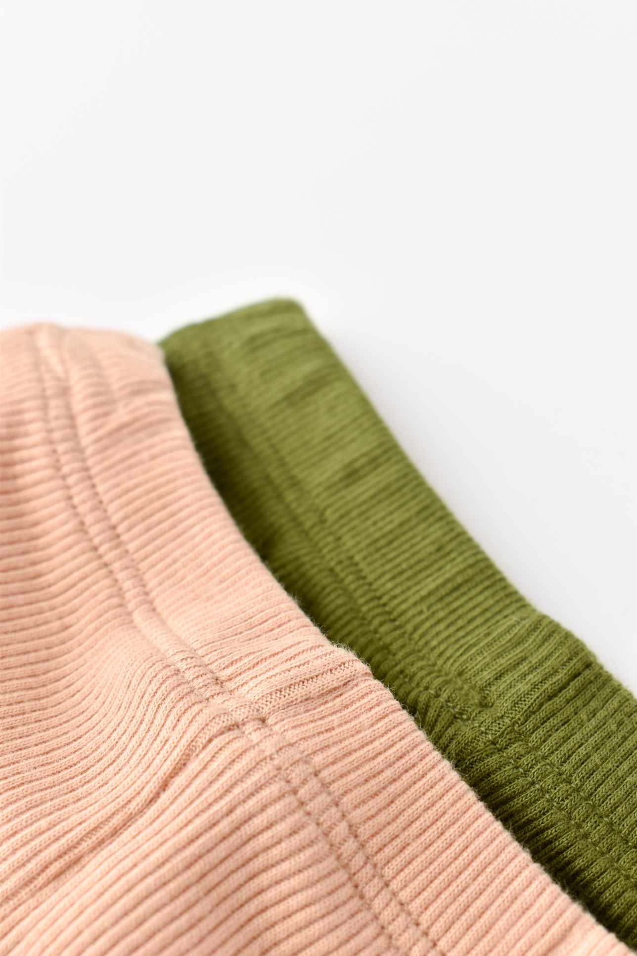 De set wordt geleverd per twee met een keuze uit de kleurcombinaties kaneel & ruby, olijf & zand, brons & cream en orange & peach. De broekjes zijn gemaakt van een verfijnde mix van 50% biologisch katoen en 50% modal, Ze bieden een ultiem zachte, ademende en huidvriendelijke ervaring.
