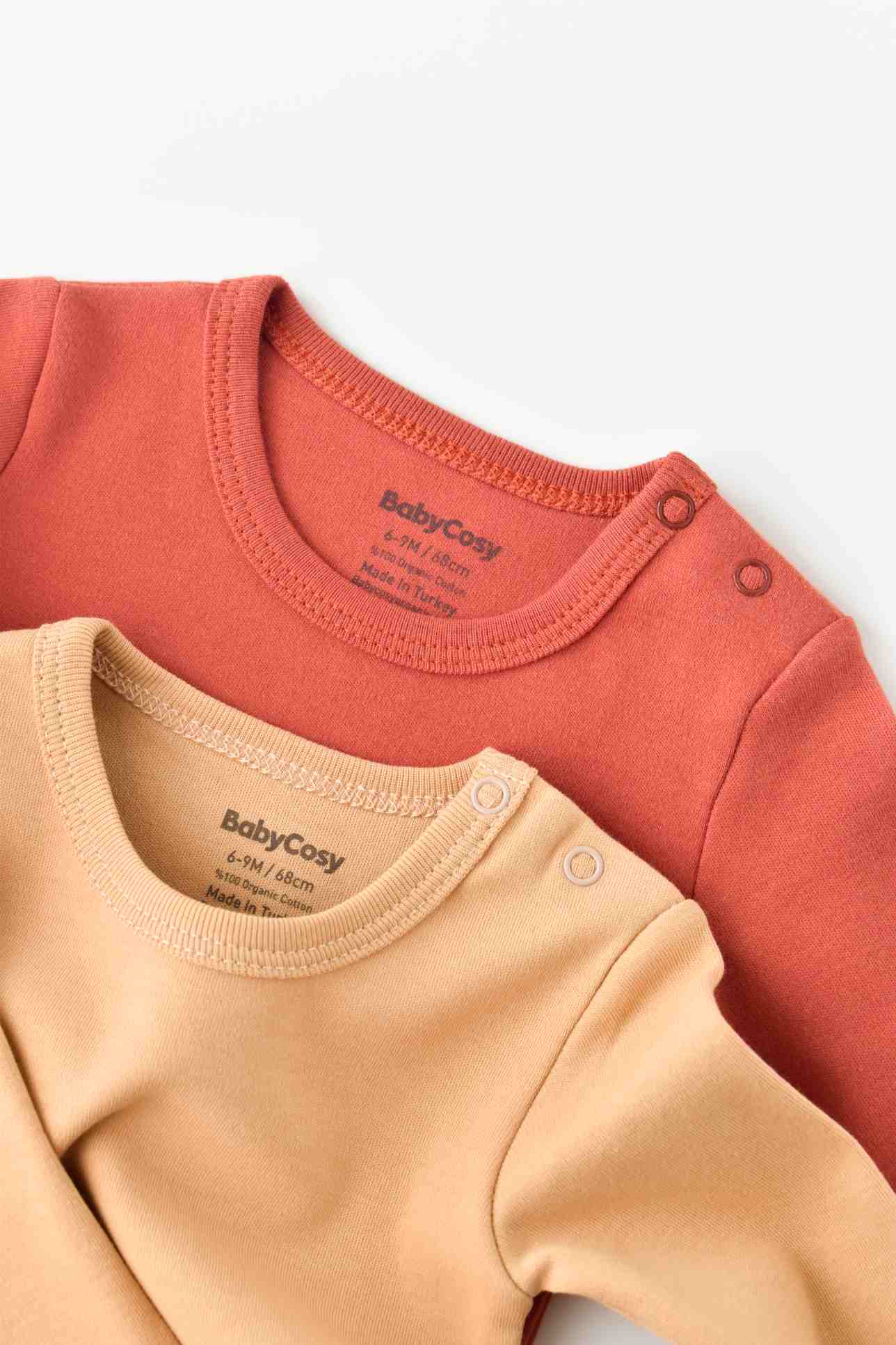Omhul je baby in de meest natuurlijke zachtheid met dit prachtige setje bestaande uit 2 babybody’s met een lange mouw in de tinten Kaneel & Mosterd of Licht Roze & Ecru. Gemaakt van 100% biologisch katoen bieden deze rompers een ultiem zachte, ademende en huidvriendelijke ervaring.